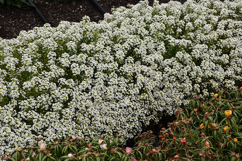 Snow Crystals Alyssum will grow to be about 9 inches tall at maturity, with a spread of 12 inches. When grown in masses or used as a bedding plant, individual plants should be spaced approximately 10 inches apart. Its foliage tends to remain low and dense right to the ground. This fast-growing annual will normally live for one full growing season, needing replacement the following year.