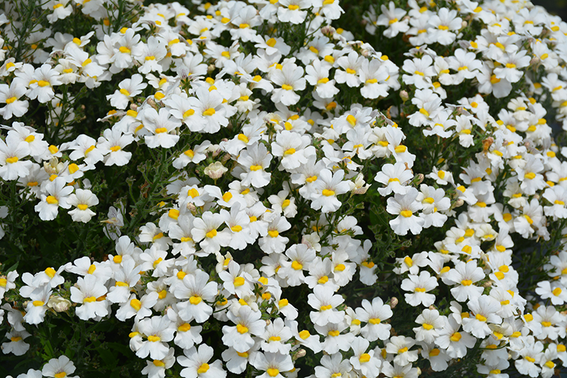 Sunsatia Coconut Nemesia is a dense herbaceous annual with an upright spreading habit of growth. Its relatively fine texture sets it apart from other garden plants with less refined foliage.
