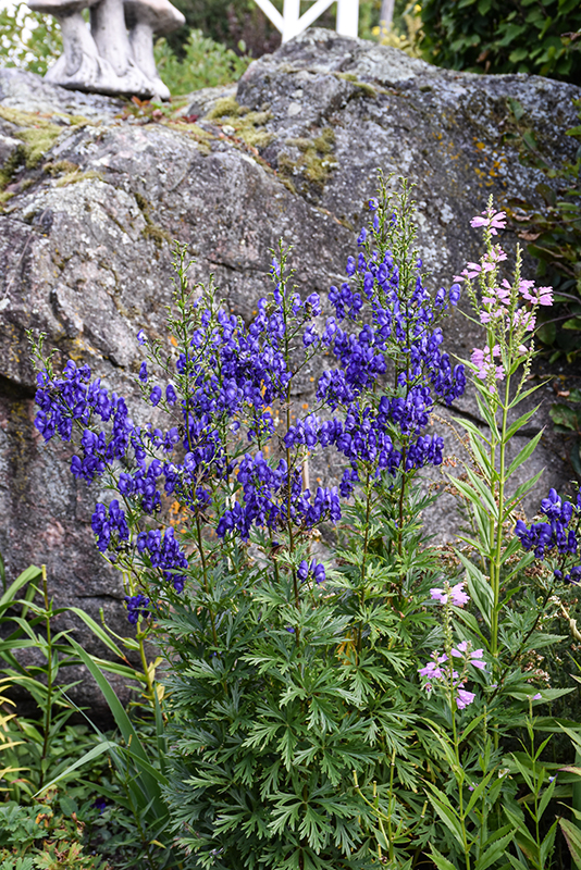 Common Monkshood is a fine choice for the garden, but it is also a good selection for planting in outdoor pots and containers. With its upright habit of growth, it is best suited for use as a 'thriller' in the 'spiller-thriller-filler' container combination; plant it near the center of the pot, surrounded by smaller plants and those that spill over the edges. It is even sizeable enough that it can be grown alone in a suitable container. Note that when growing plants in outdoor containers and baskets, they may require more frequent waterings than they would in the yard or garden. Be aware that in our climate, most plants cannot be expected to survive the winter if left in containers outdoors, and this plant is no exception. Contact our experts for more information on how to protect it over the winter months.