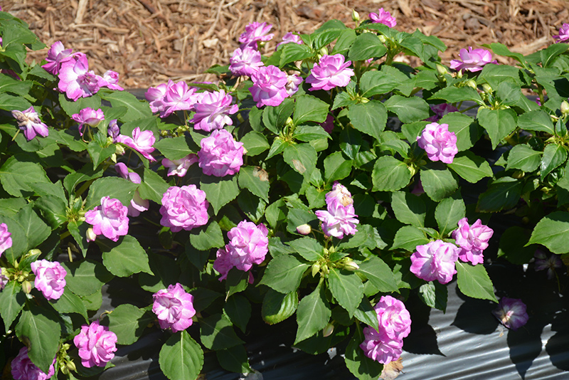 Rockapulco® Wisteria Impatiens is bathed in stunning double lavender round flowers with white overtones at the ends of the stems from mid spring to late summer. Its small pointy leaves remain green in colour throughout the season.