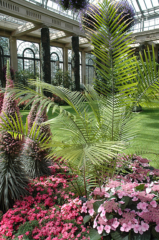 A shade tolerant palm that thrives well under a canopy of tall trees, can adjust to light levels; grows very quickly and is tolerant of different soil types; must be fertilized frequently; an attractive floor plant for a high light indoor area