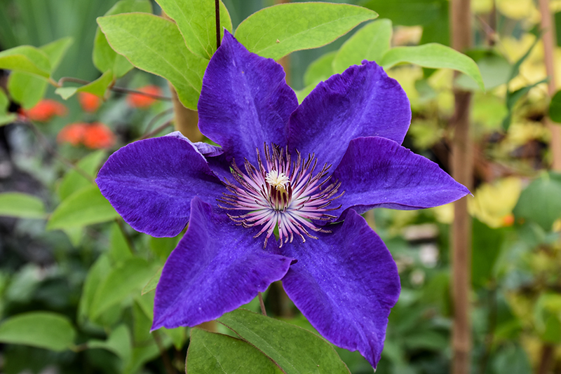 The President Clematis makes a fine choice for the outdoor landscape, but it is also well-suited for use in outdoor pots and containers. Because of its spreading habit of growth, it is ideally suited for use as a 'spiller' in the 'spiller-thriller-filler' container combination; plant it near the edges where it can spill gracefully over the pot. It is even sizeable enough that it can be grown alone in a suitable container. Note that when grown in a container, it may not perform exactly as indicated on the tag - this is to be expected. Also note that when growing plants in outdoor containers and baskets, they may require more frequent waterings than they would in the yard or garden. Be aware that in our climate, most plants cannot be expected to survive the winter if left in containers outdoors, and this plant is no exception. Contact our experts for more information on how to protect it over the winter months.