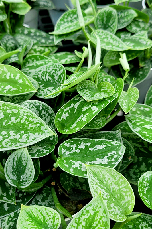 Picta Pothos' attractive heart-shaped leaves remain olive green in colour with showy silver variegation and tinges of grayish green throughout the year on a plant with a spreading habit of growth.